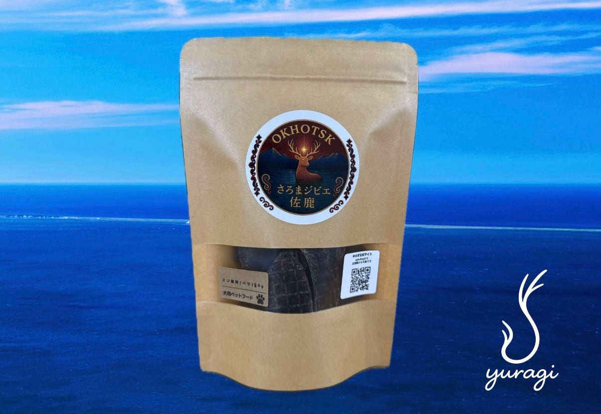ワンちゃんのオヤツやご褒美に最適な「鹿肉」ジャーキー(ハツ) 80g入りパッケージの商品です。